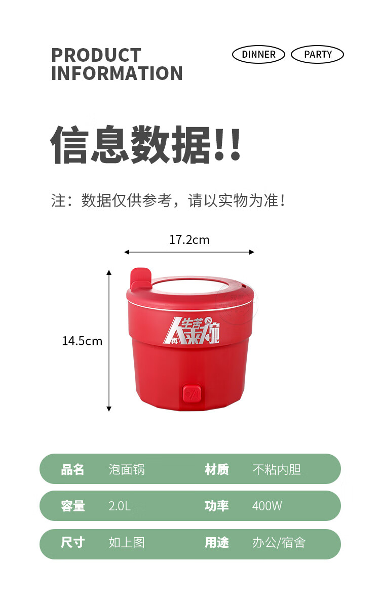 欧开乐2L大容量泡面锅多功能电热锅电煮锅JJ-400