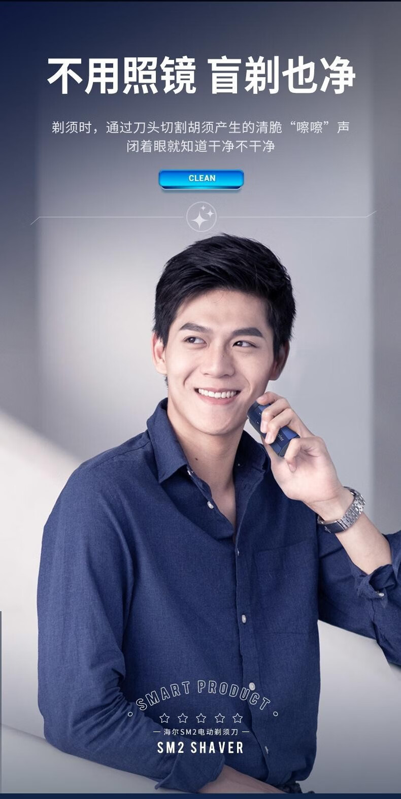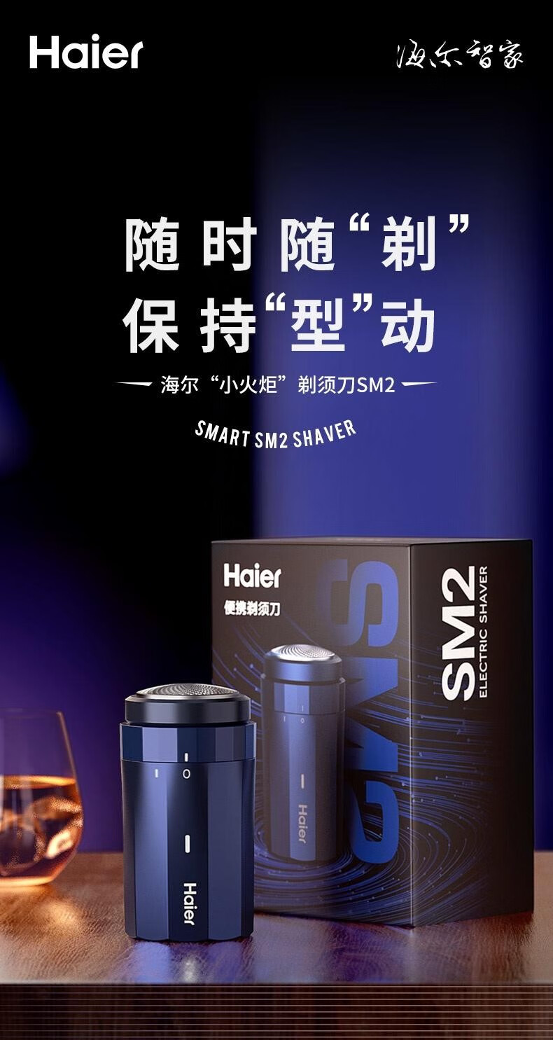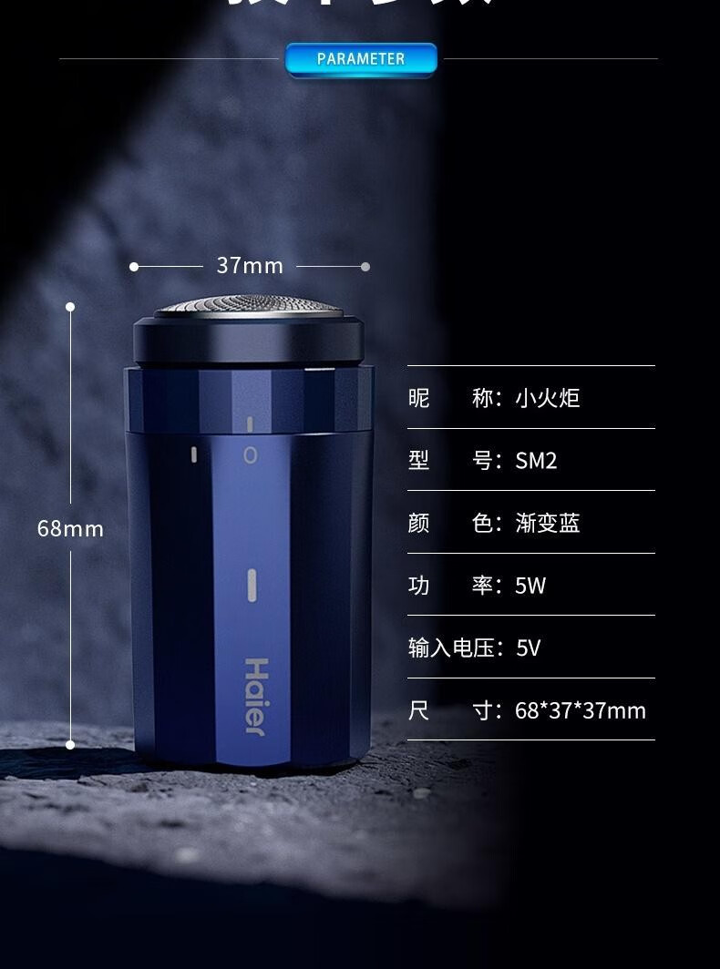 海尔 Haier 便携式剃须刀SM2迷你充电式电动剃须刀涡轮三叶男士礼物刮胡刀胡须刀刀头水洗 小火炬SM2 父亲节礼物
