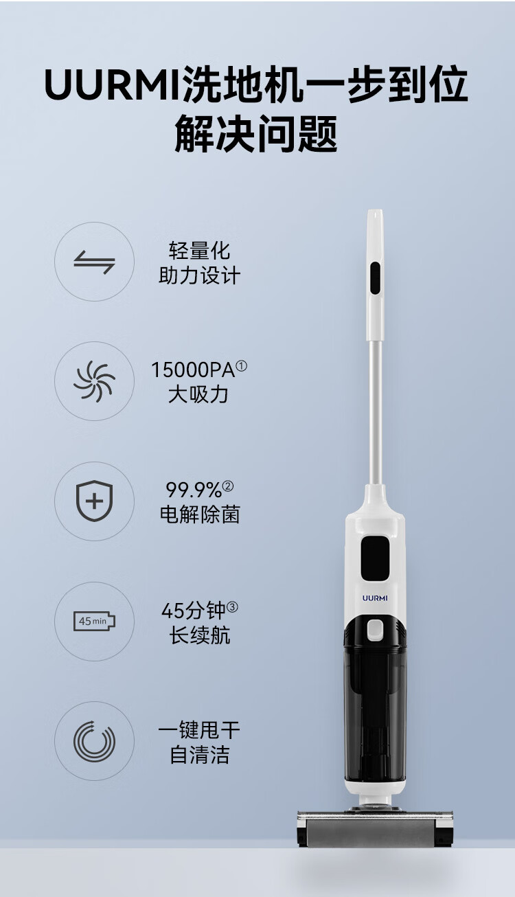 包邮-悠米/UURMI 德国无线智能洗地机 自清洁大水箱家用的扫地机 吸洗拖一体手持吸尘器