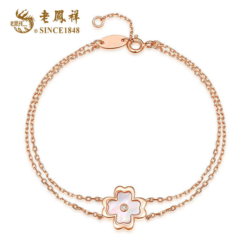 老凤祥天然钻石<幸运相伴>S925银粉色贝母四叶草手链LFX000115