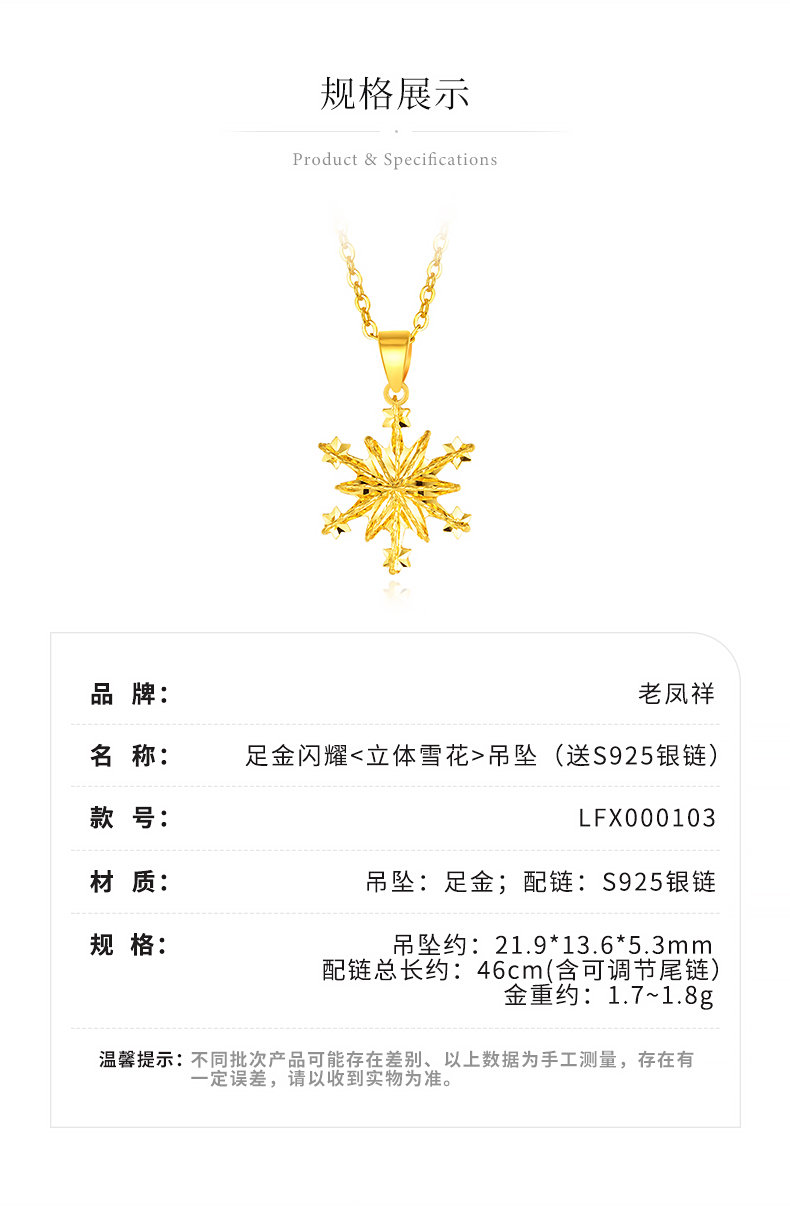 老凤祥足金闪耀<立体雪花>吊坠(送S925银链)LFX000103