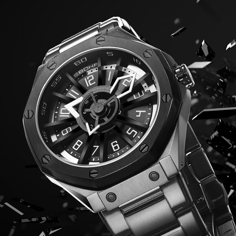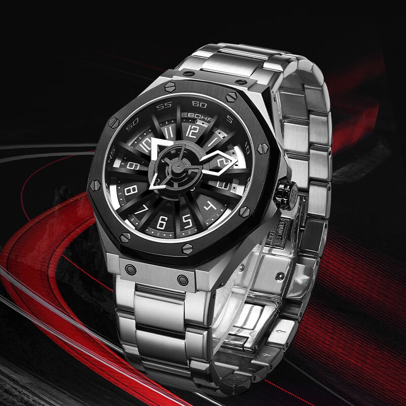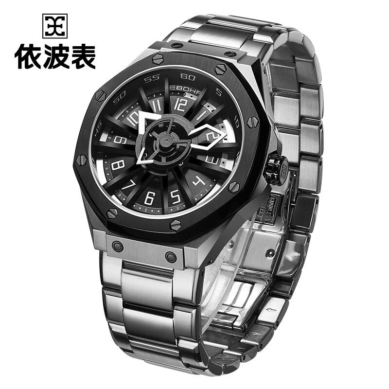 全国包邮 -依波/EBOHR 探索者系列男士自动机械表 潮酷镂空防水实心钢带手表