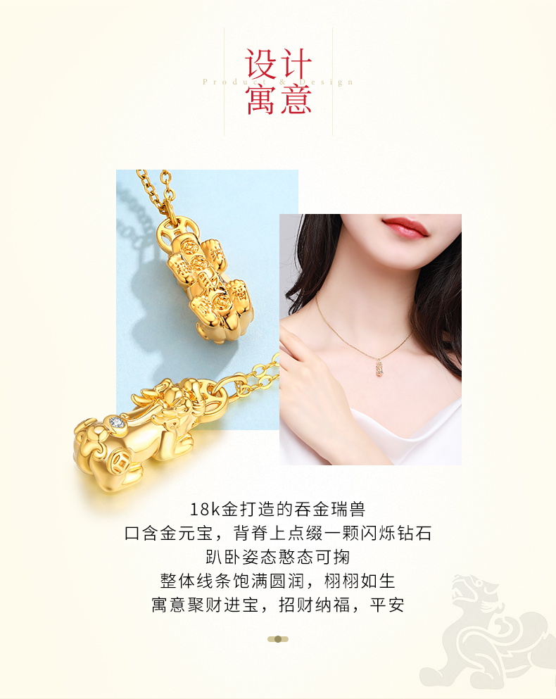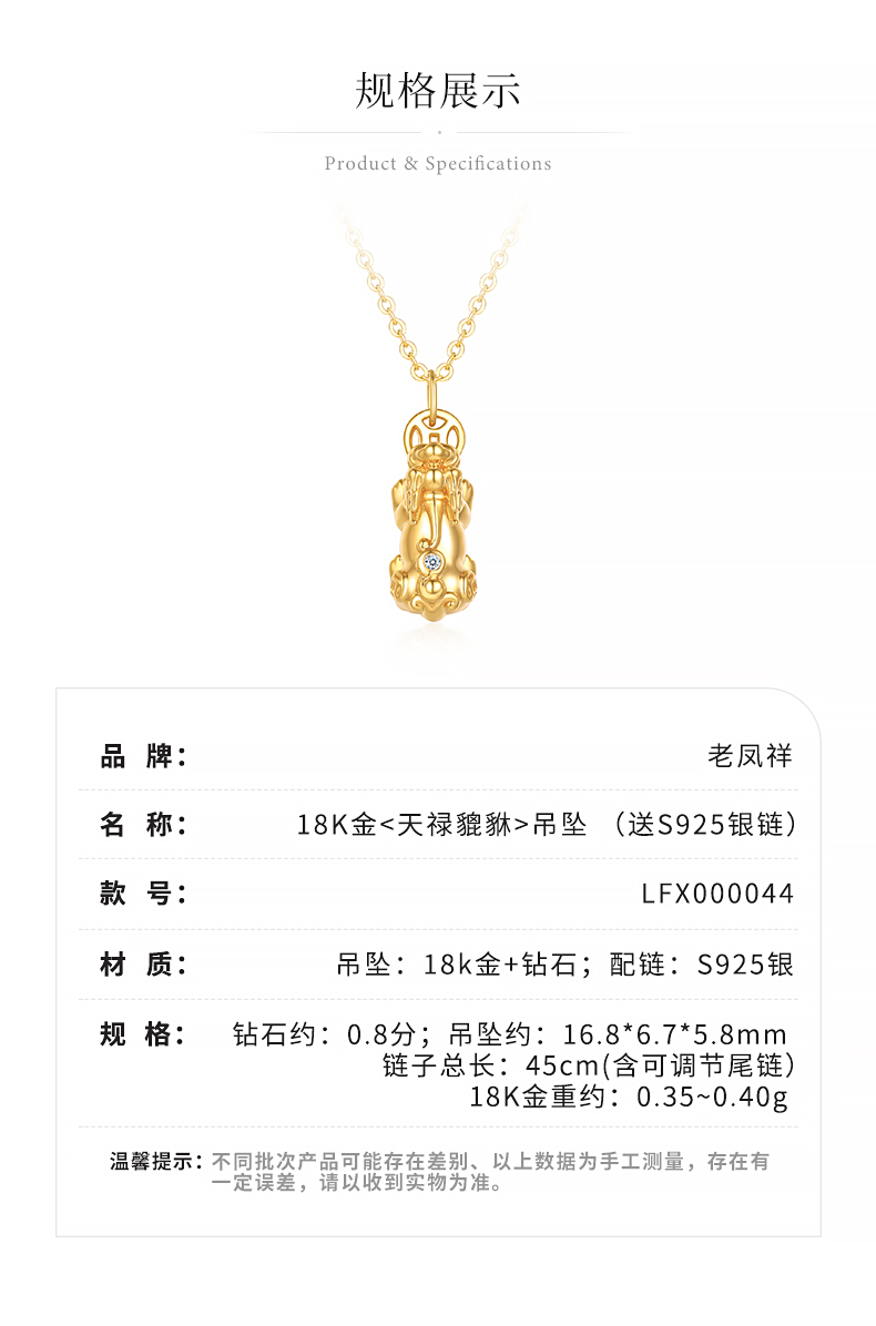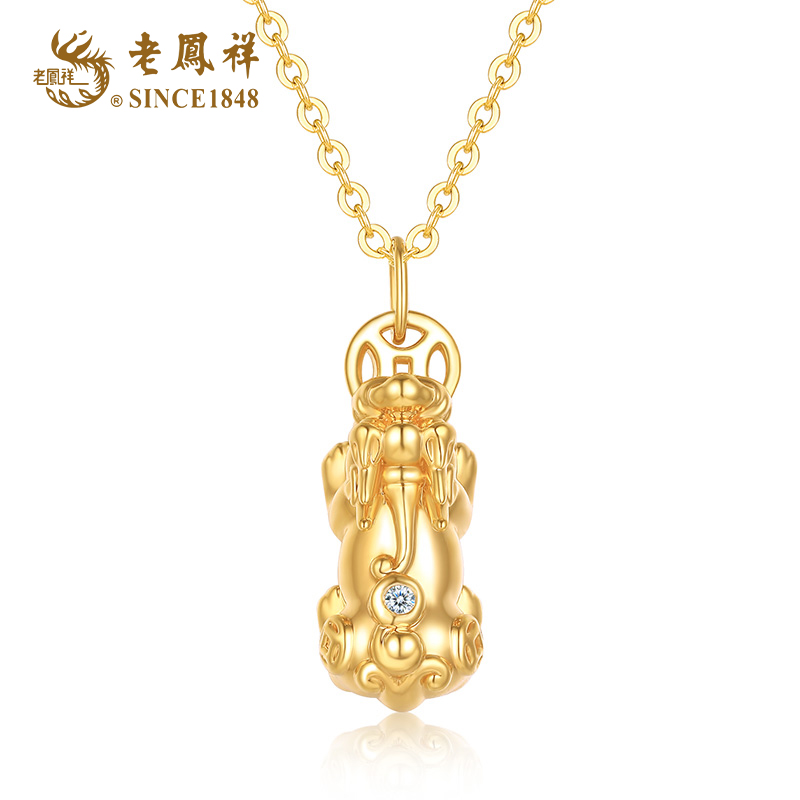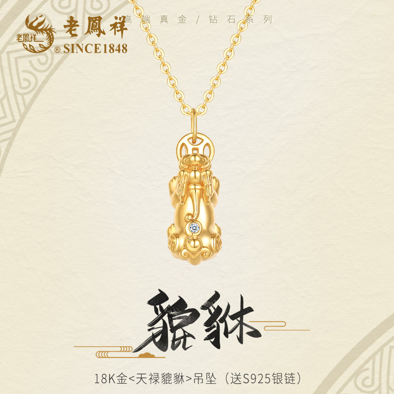 老凤祥真金18K金镶钻石<天禄貔貅>吊坠 (送S925银链) LFX000044
