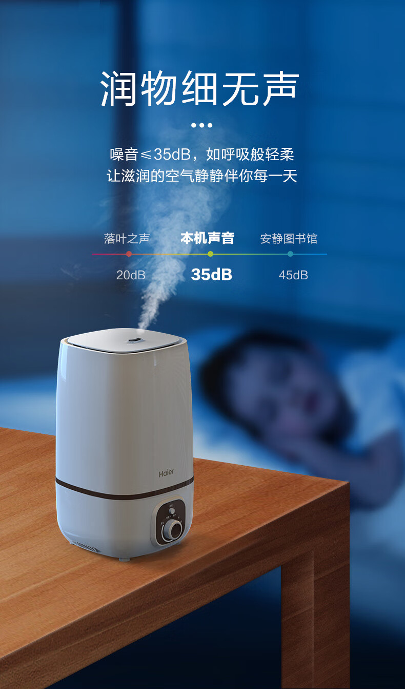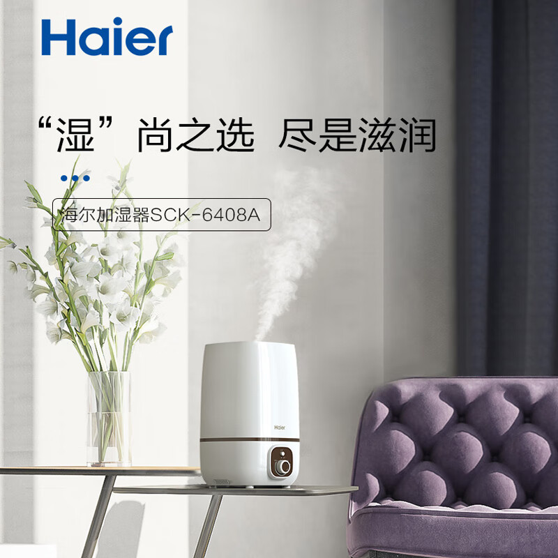 海尔/Haier 加湿器 4L大容量水箱 香薰功能 可控夜灯 缺水保护 SCK-6408A