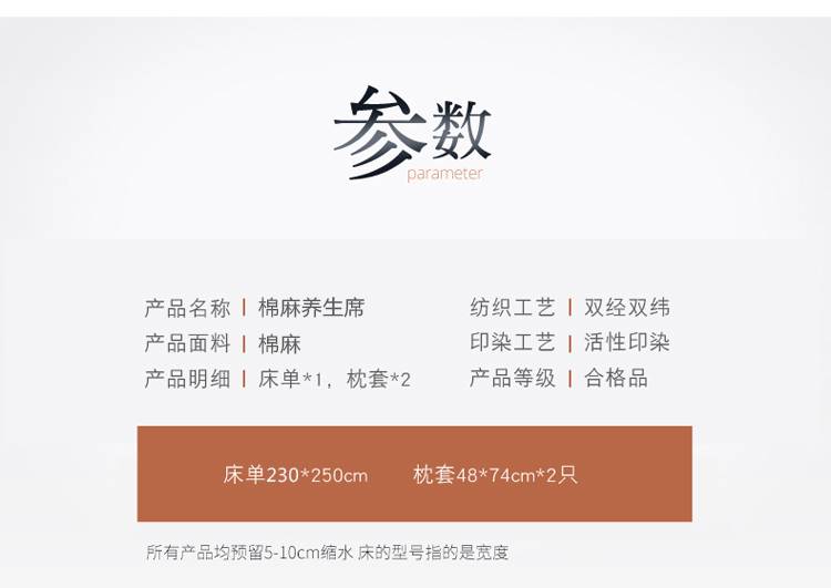 悠梦嘉居 棉麻养生席 棉麻凉席三件套230cm*250cm 下单备注:格之魅/叶之海