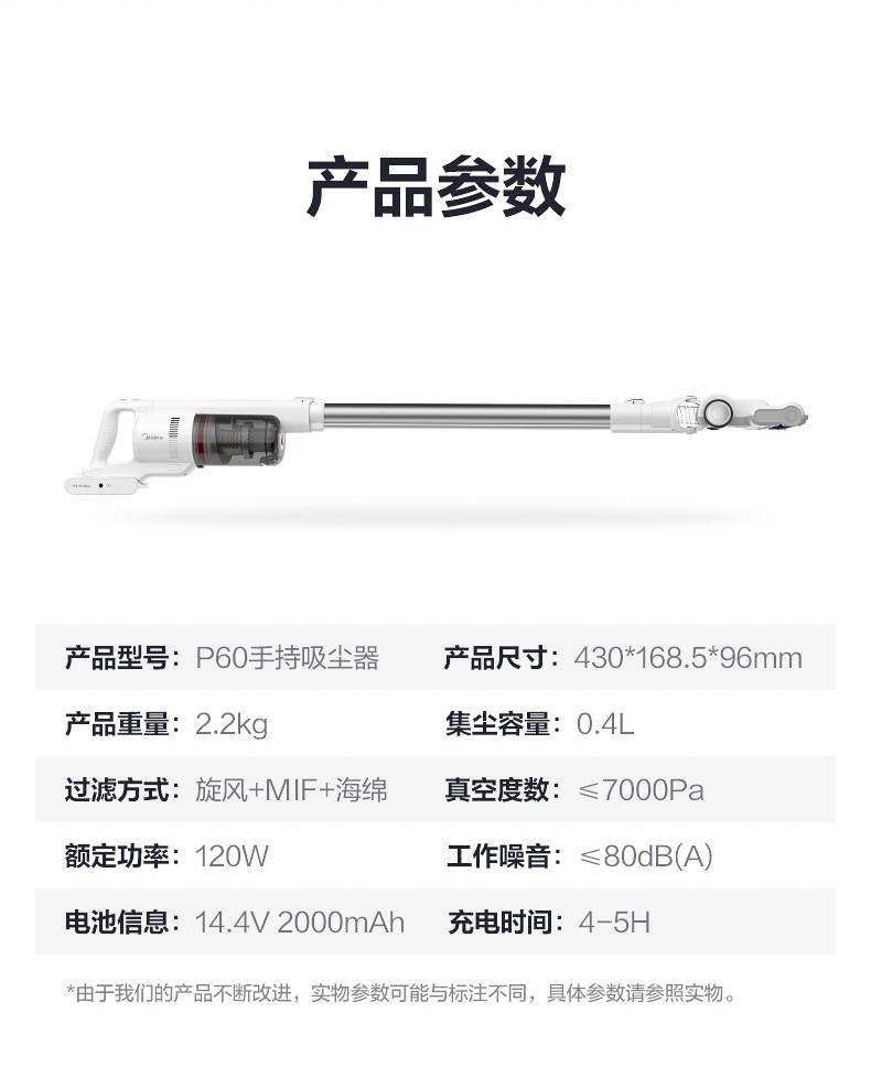 美的(Midea)手持大吸力吸尘器 车载家用二合一强力吸尘器 P60