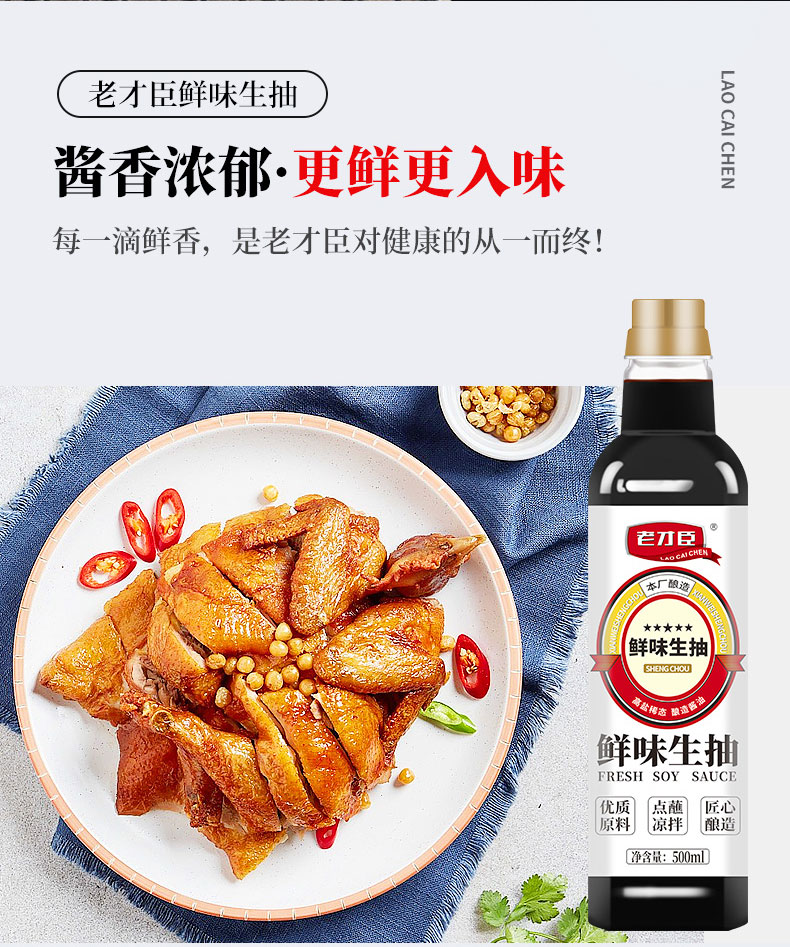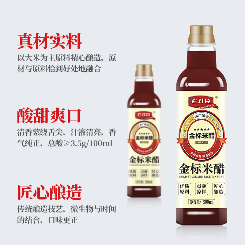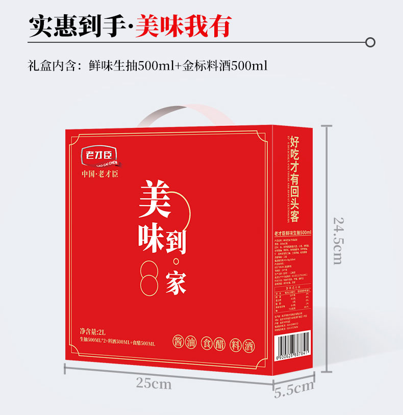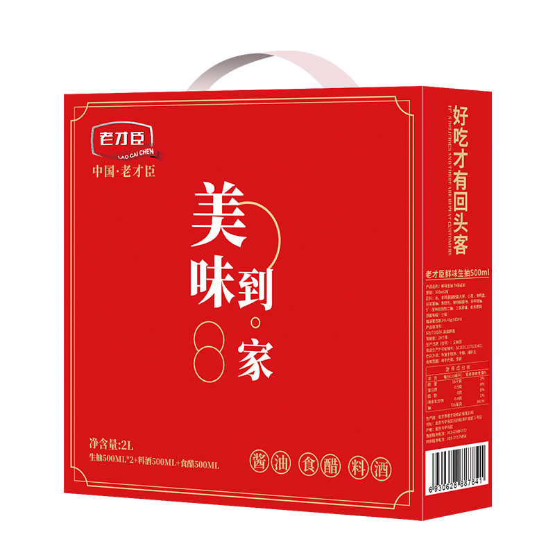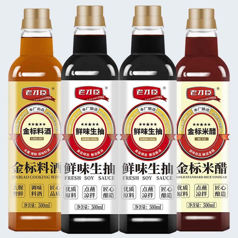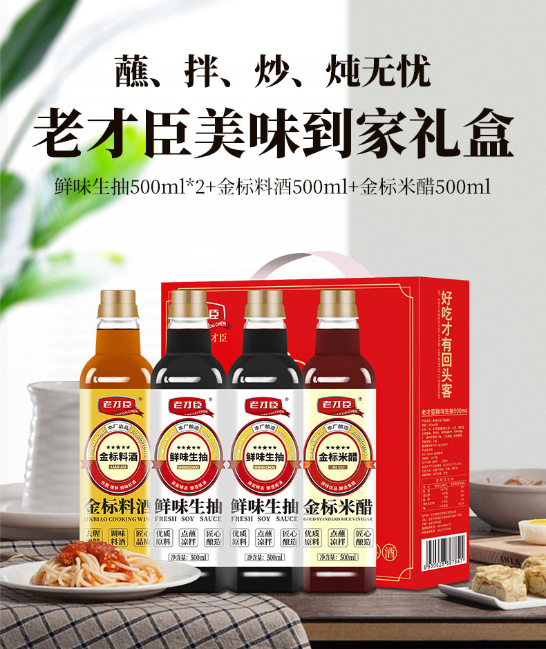 老才臣 厨房调味四瓶装 (生抽2瓶+米醋1瓶+料酒1瓶)家庭礼盒装 500ml/瓶*4瓶