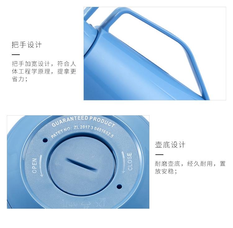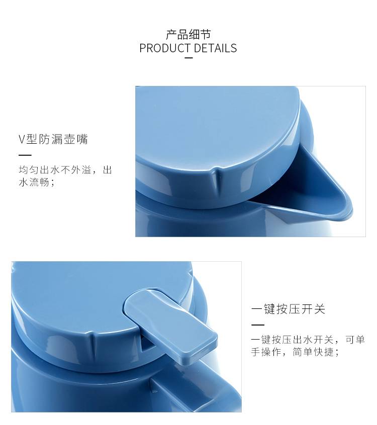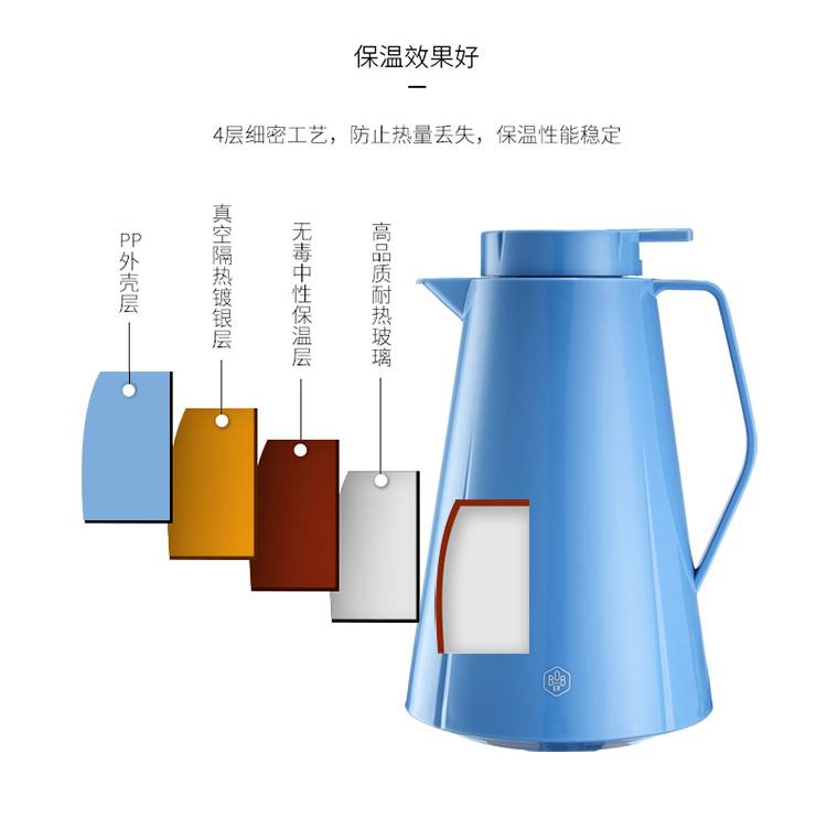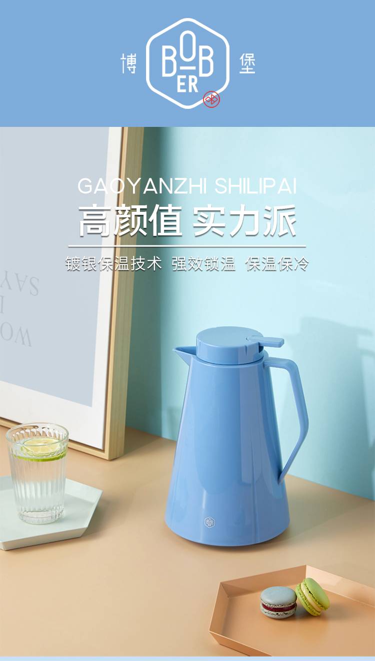 博堡 惠乐玻璃大容量保温壶 镀银保冷保温玻璃内胆水壶 蓝色 BHLH-1000BL