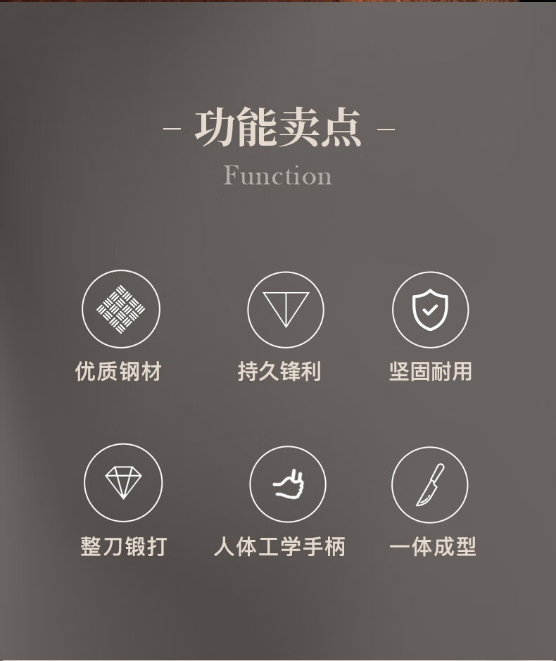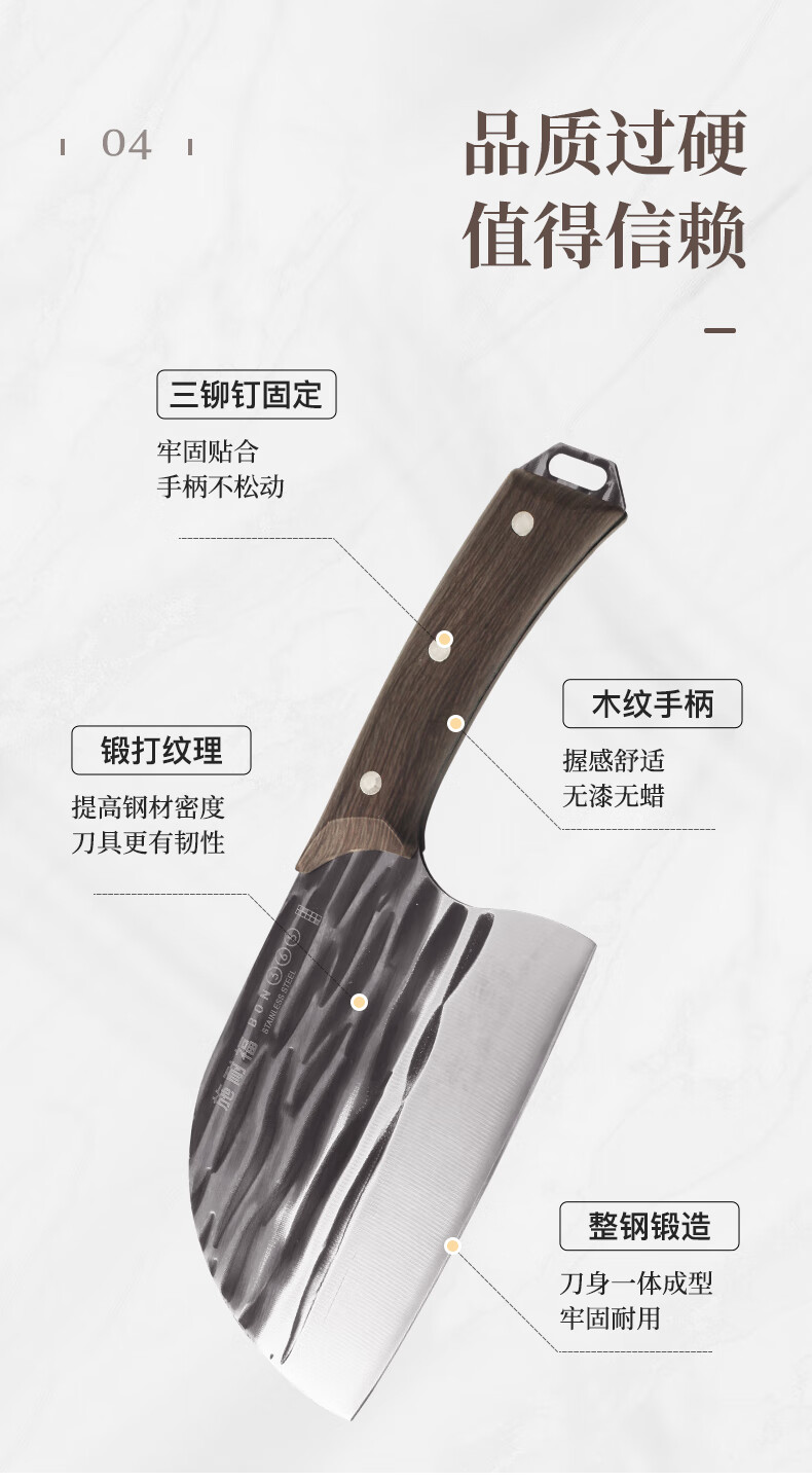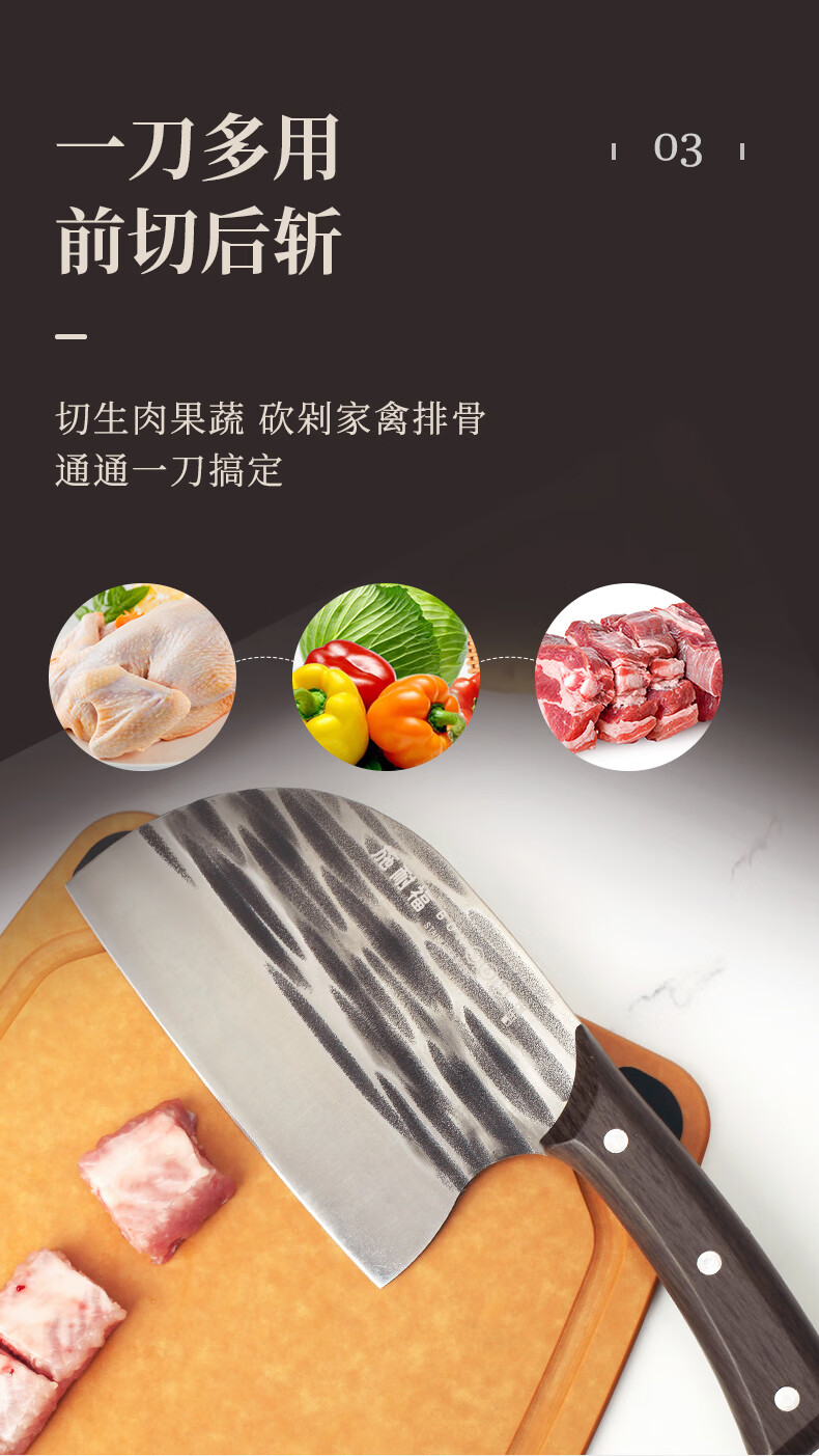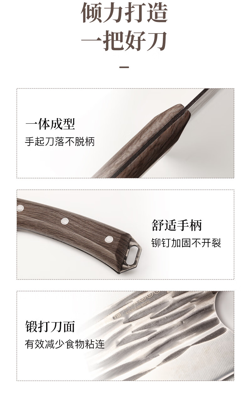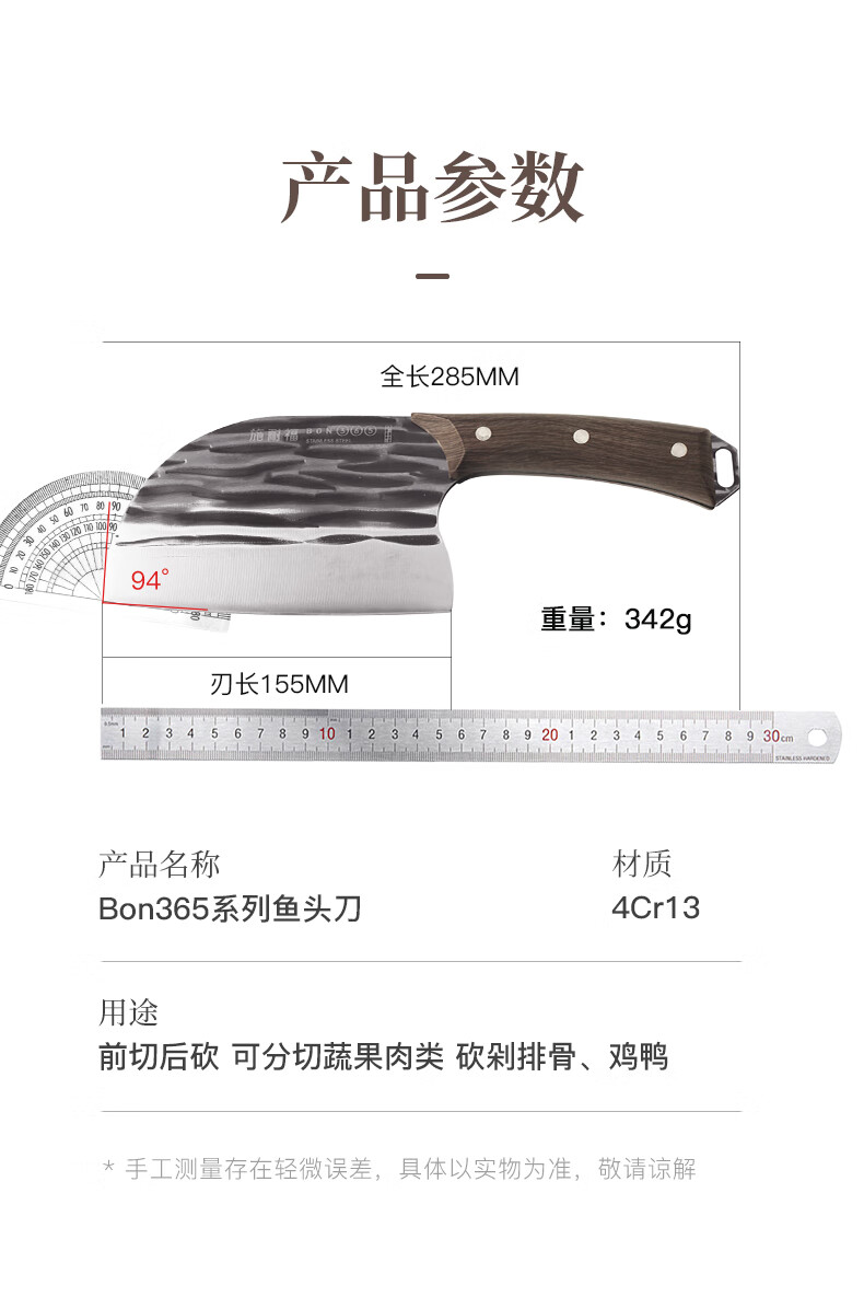 施耐福BON365系列鱼头刀 用厨房不锈钢切菜刀 前切后砍 木纹手柄 锋利好刀