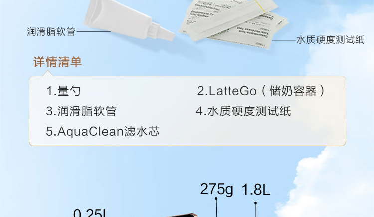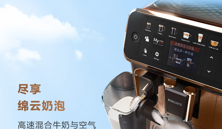 飞利浦PHILIPS云朵咖啡机5系EP5144 意式全自动浓缩家用/办公现磨咖啡机Lattego牛奶研磨一体奶泡系统 白金款【新疆/西藏/青海不发货】