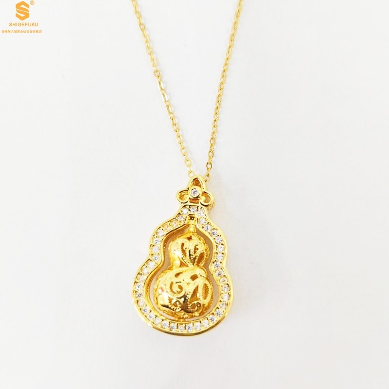 香港周六福黄金钻石首饰耀目金镶钻福禄如意宝葫项链