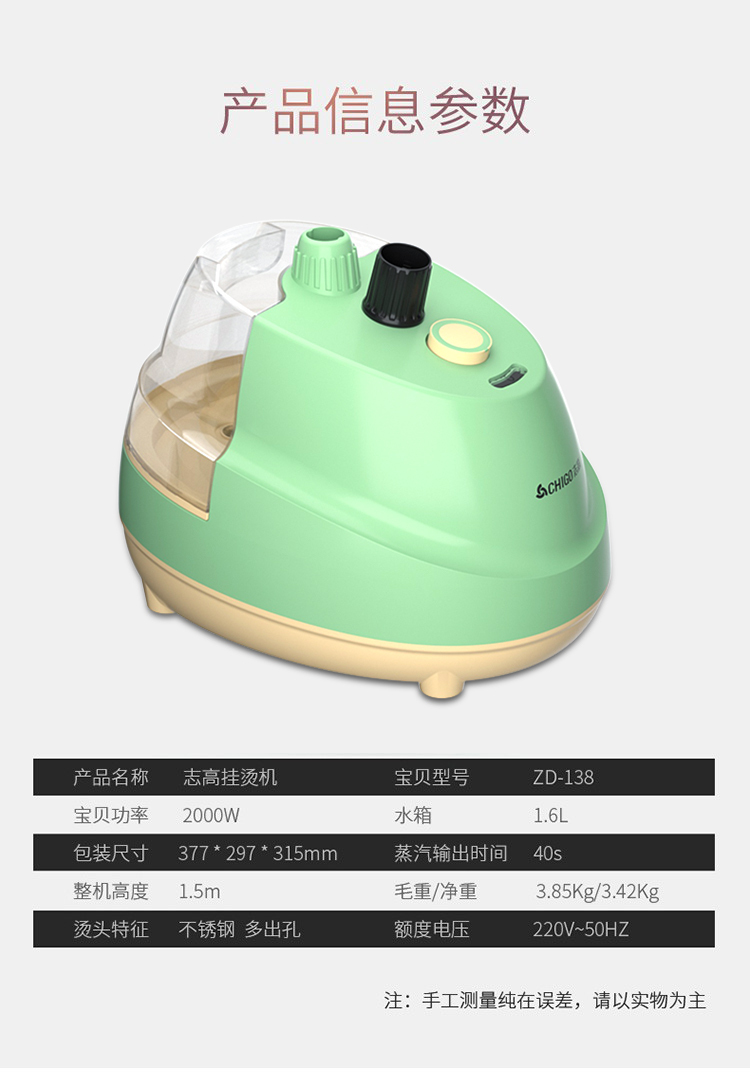志高挂烫机家用立式手持大蒸汽1.6L电熨斗
