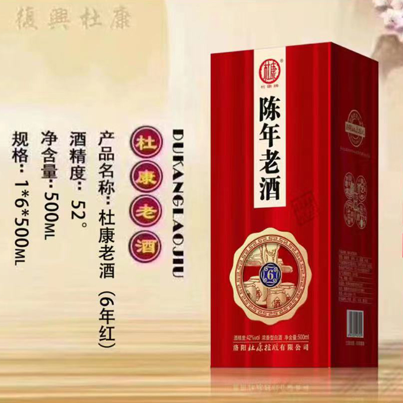 杜康6年红陈年老酒浓香型白酒52度500ml * 6瓶
