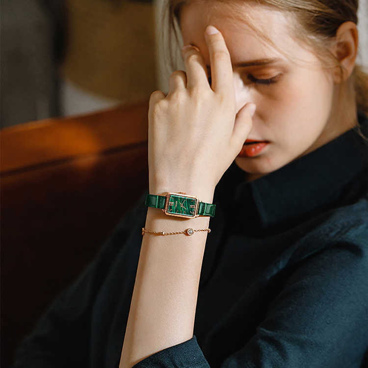 CaldiceKris复古孔雀石方形小绿表CK-19033