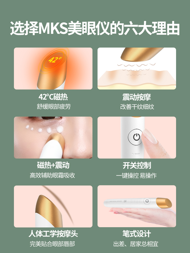 美克斯磁力美眼仪导入眼霜温热舒缓NV8519A(金色)