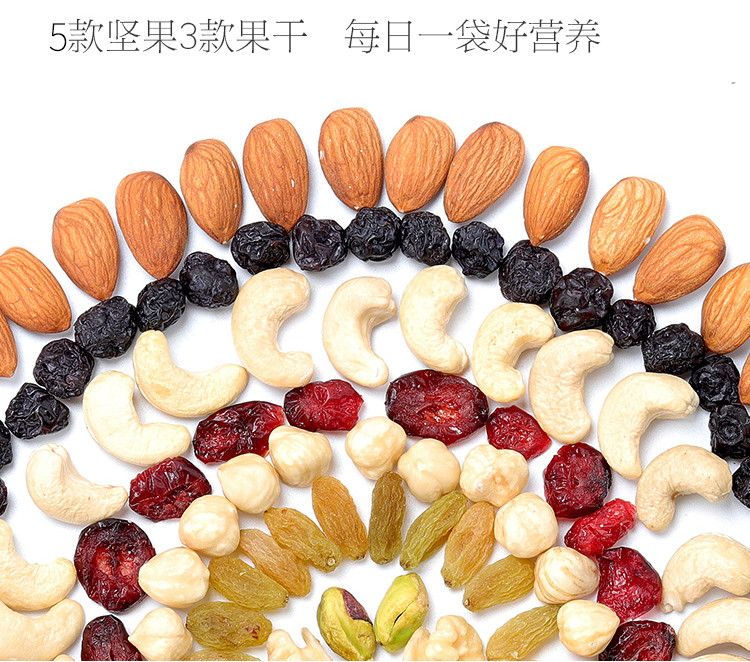 包邮-天生好果每日坚果C干湿分离款750g/规格25g*30袋(脱皮核桃仁+越南腰果仁 +扁桃仁 +美国开心果仁+土耳其榛子仁+新疆葡萄干+美国蔓越莓干+蓝莓干)【新疆/西藏/海南/内蒙古/甘肃/青海/宁夏不发货】