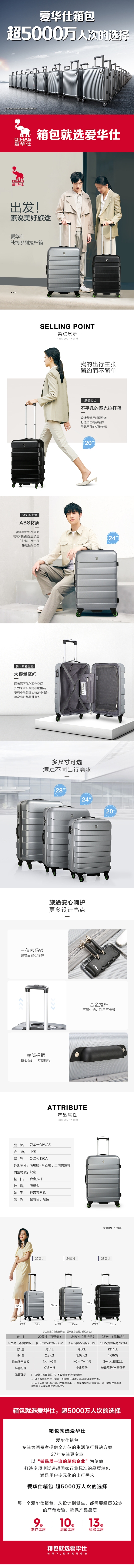 爱华仕(OIWAS)拉杆箱6130万向轮拉杆箱ABS拉杆行李箱24英寸