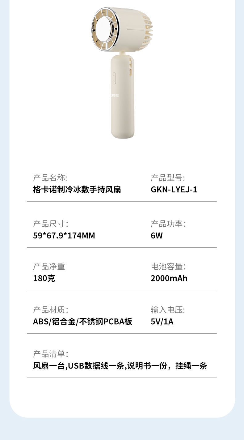 格卡诺便携式多功能制冷冰敷手持风扇GKN-SCFS-1