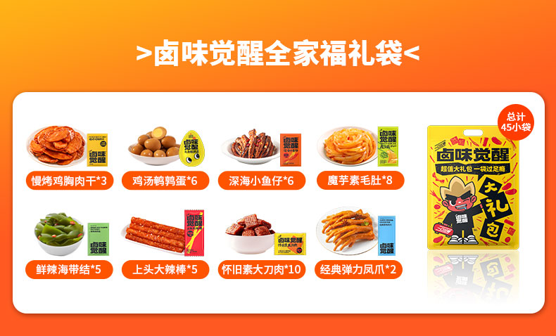 卤味觉醒 全家福礼袋45包 530g【新疆西藏、青海、内蒙古、甘肃、宁夏不发货】