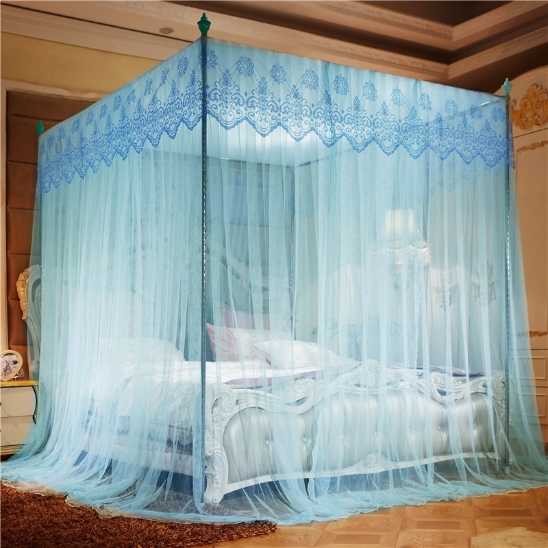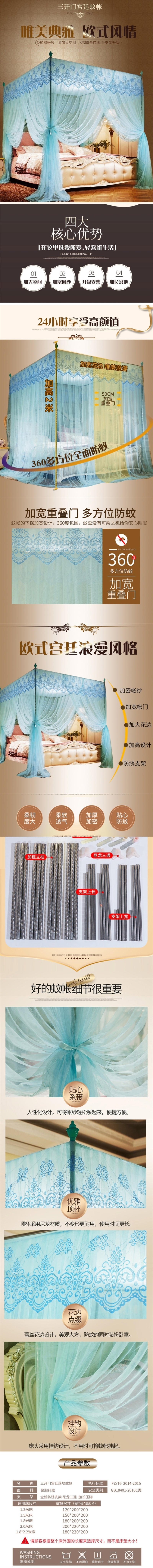 好暖2023新款三开门宫廷落地蚊帐-繁花(水绿180*200cm)