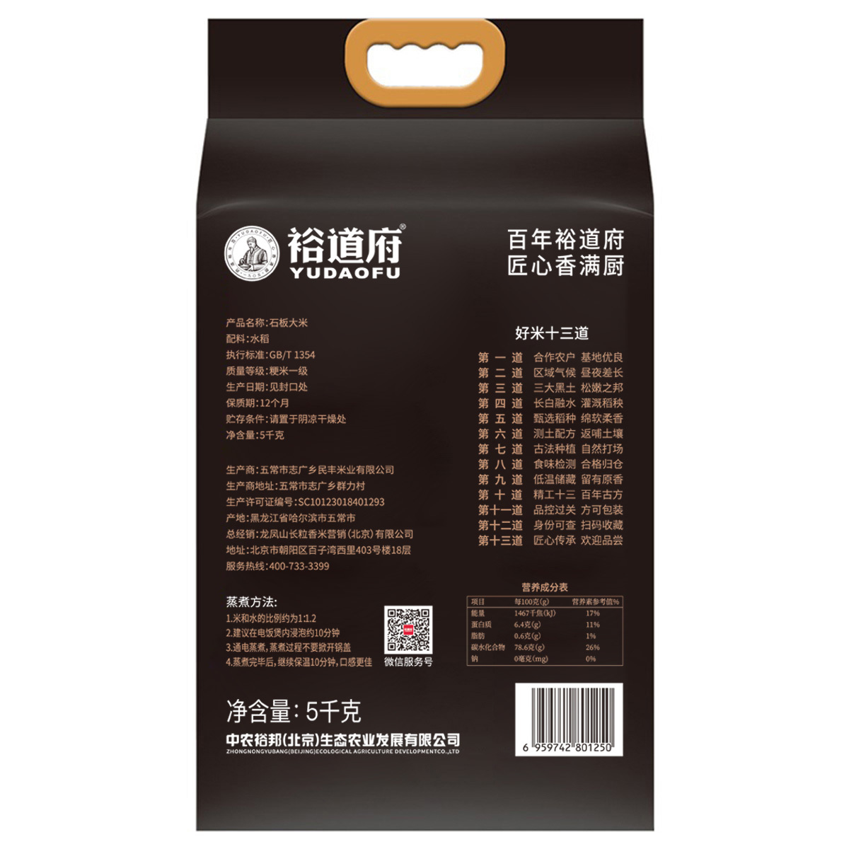 裕道府东北大米有机种植石板大米双层袋真空装5kg