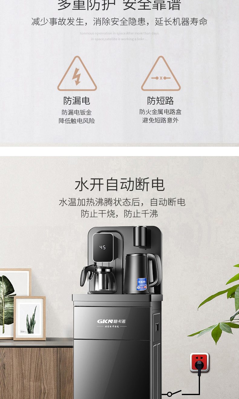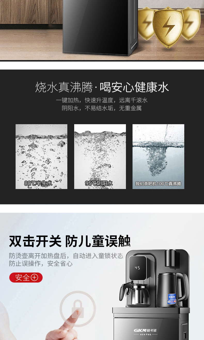 格卡诺茶吧机1400W家用茶吧台饮水机遥控款(曜石黑)