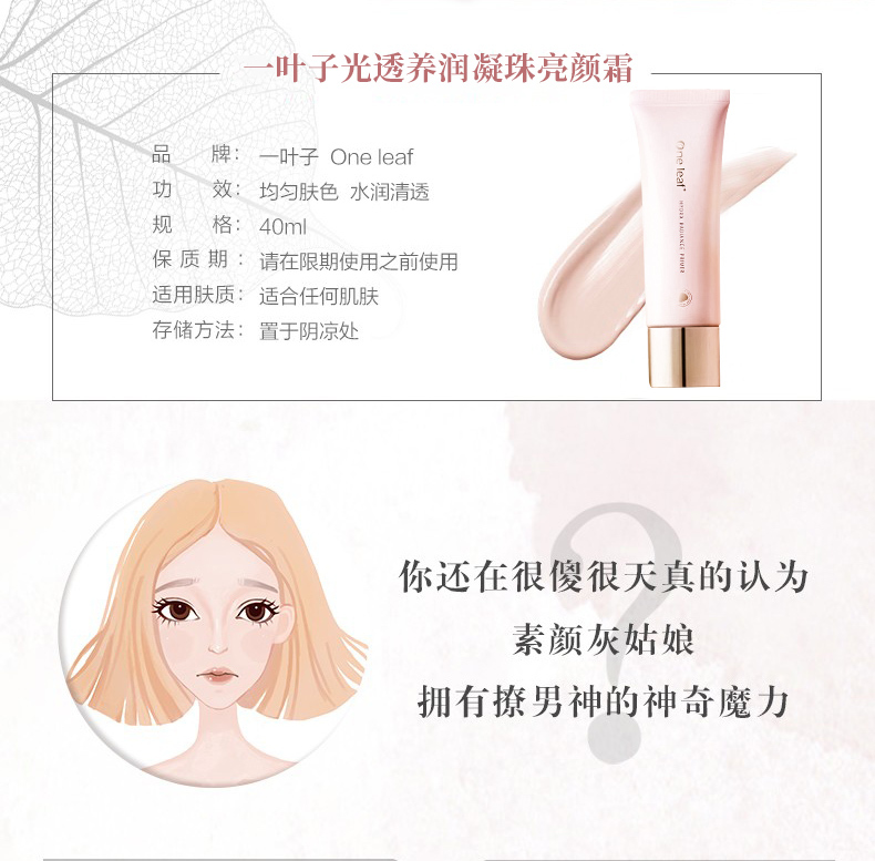 一叶子光透养润凝珠妆前亮颜保湿乳隔离乳霜40ml