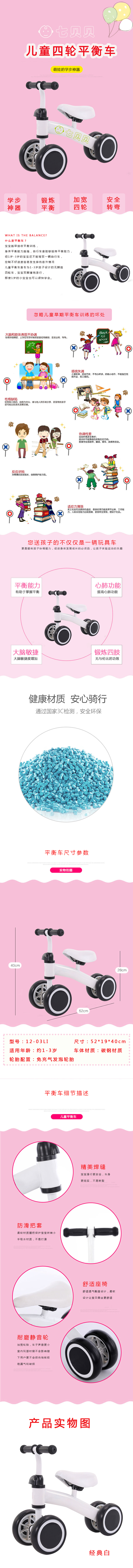 七贝贝儿童四轮平衡车学步车12-03LI学步神器儿童无脚踏单车