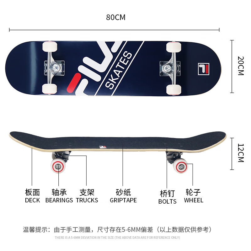 斐乐FILA滑板初学者专业板儿童青少年刷街双翘板男女生成人四轮滑板车 深蓝色 FM502【甘肃、青海、宁夏、内蒙古、新疆、西藏不发货】