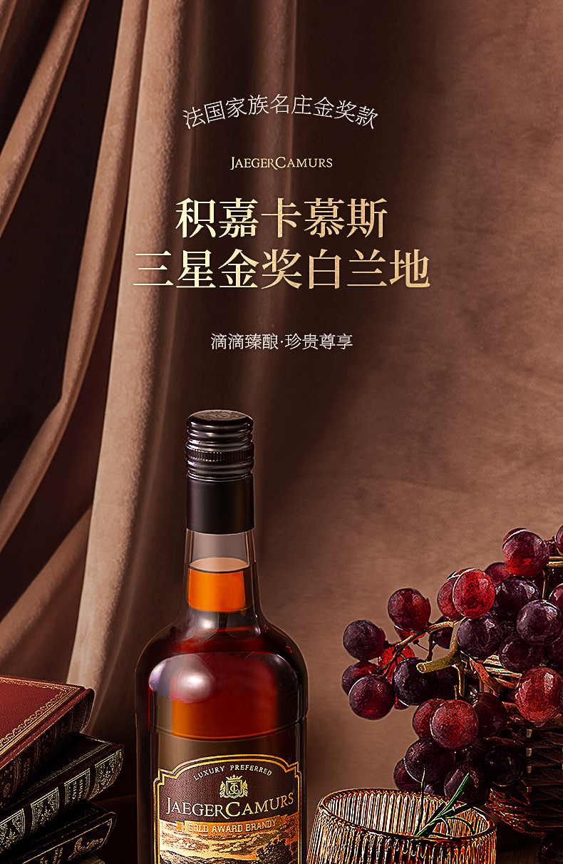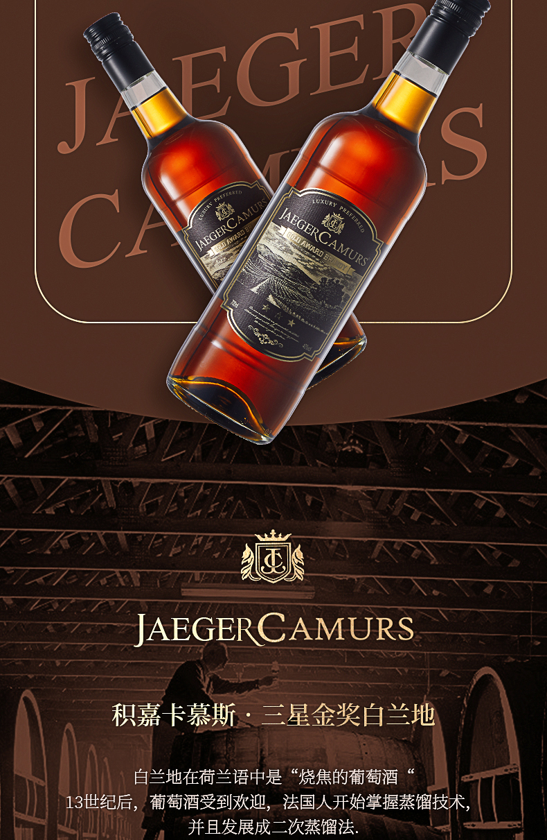 积嘉卡慕斯三星白兰地洋酒金奖VSOP白兰地700ml*1支装