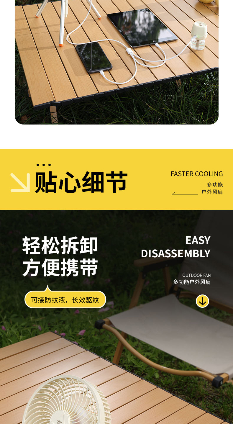 格卡诺多功能户外露营风扇奶油白GKN-FS-36