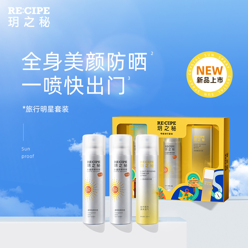 玥之秘 旅行明星套装 玥之秘水晶防晒喷雾100ml*2+玥之秘光感素颜喷雾100ml*1【新疆西藏海南不发货】