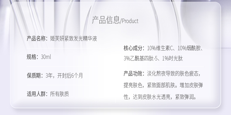 姬芙妍逆龄紧致发光精华液淡化熬夜提亮肤色紧致弹润面部肌抗衰老30ml