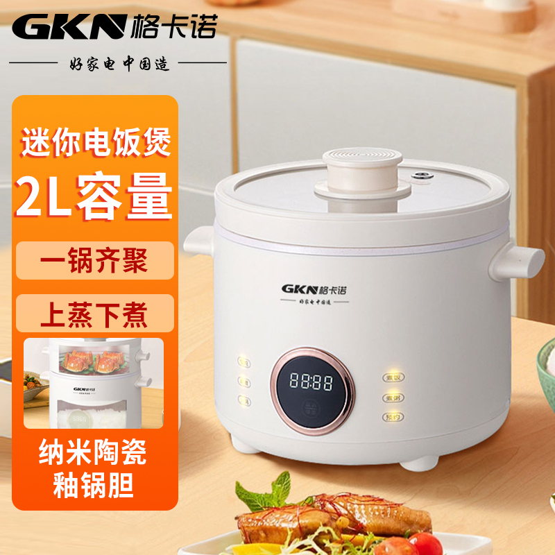 格卡诺迷你电饭煲蒸煮炒三合一多功能2L电饭煲微压煲