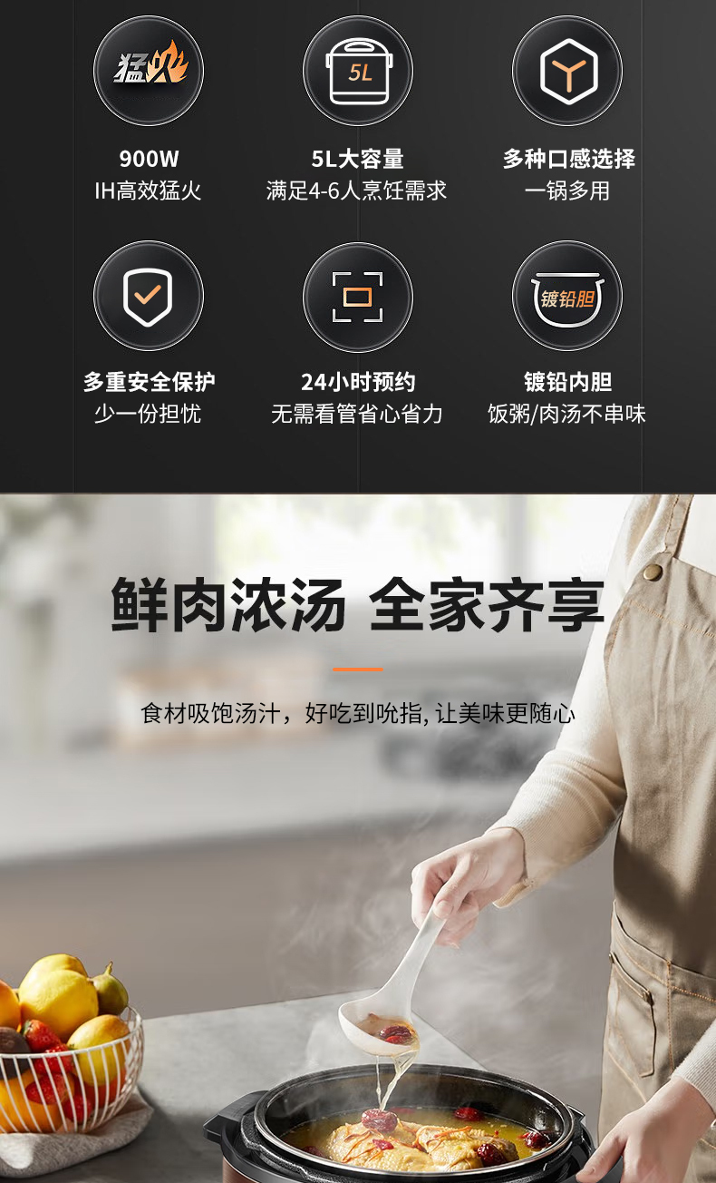 格卡诺电压力锅5L多功能电饭煲压力煲GKN-YLG-2