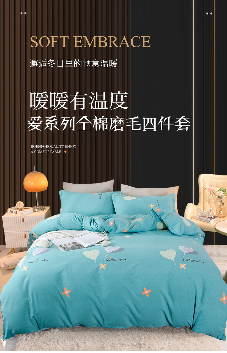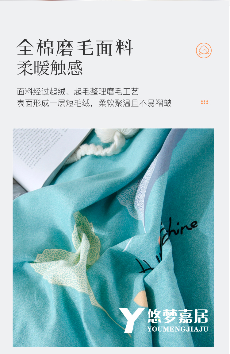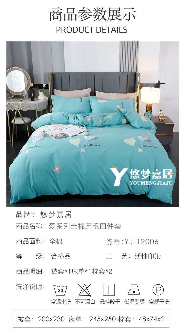 悠梦嘉居 爱系列全棉磨毛四件套定情信物(被套:200*230;床单:245*250;枕套:48*74*2)
