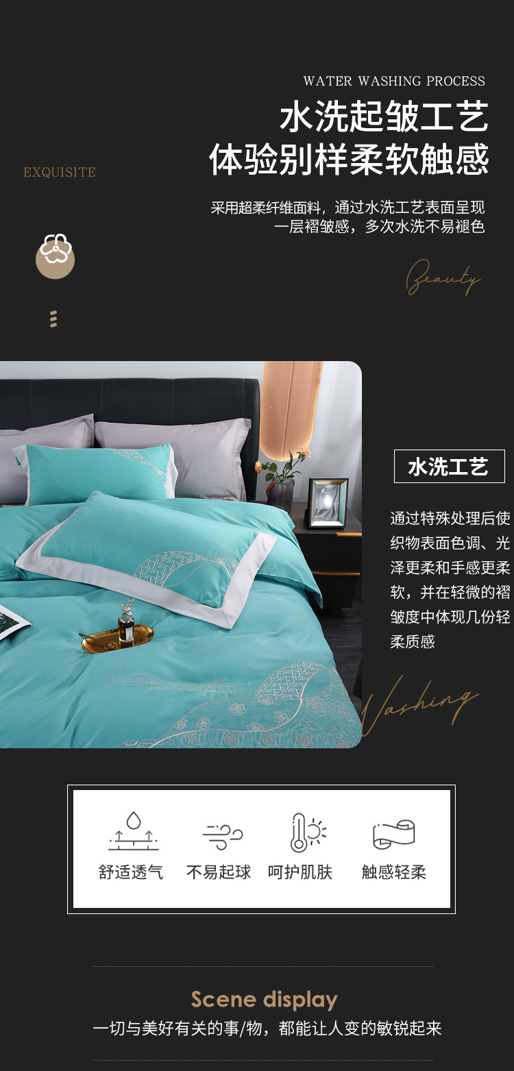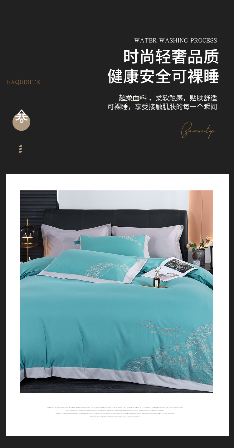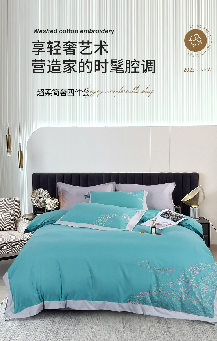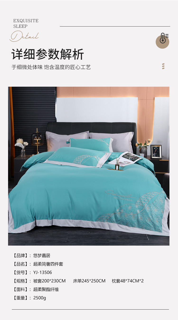 悠梦嘉居 超柔简奢四件套湖蓝(被套:200*230;床单:245*250;枕套:48*74*2)