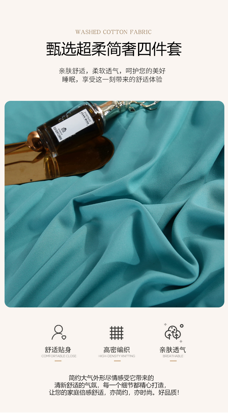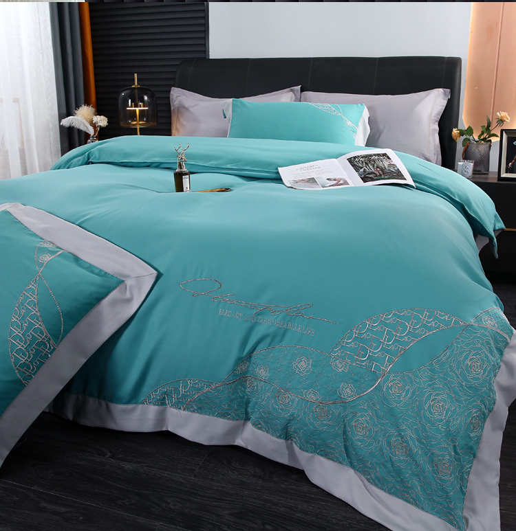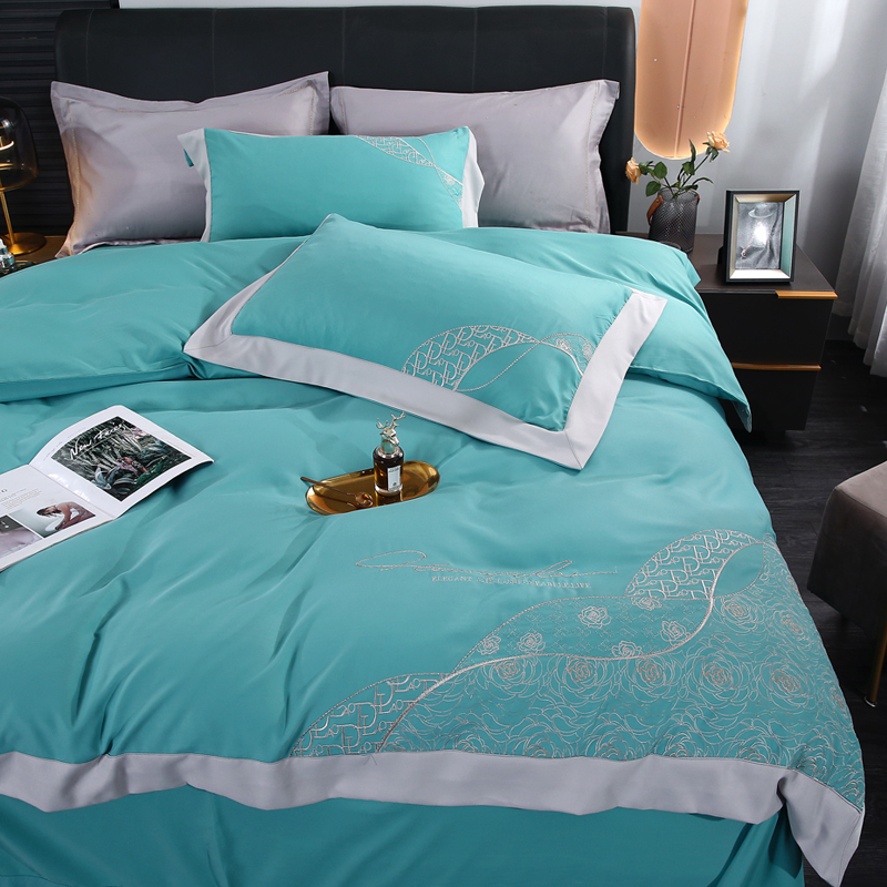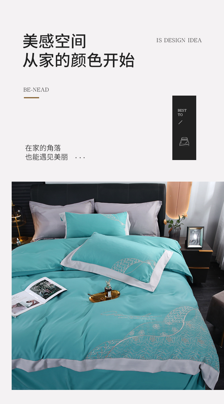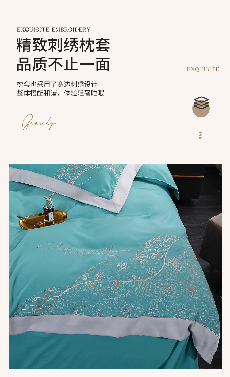 悠梦嘉居 超柔简奢四件套湖蓝(被套:200*230;床单:245*250;枕套:48*74*2)