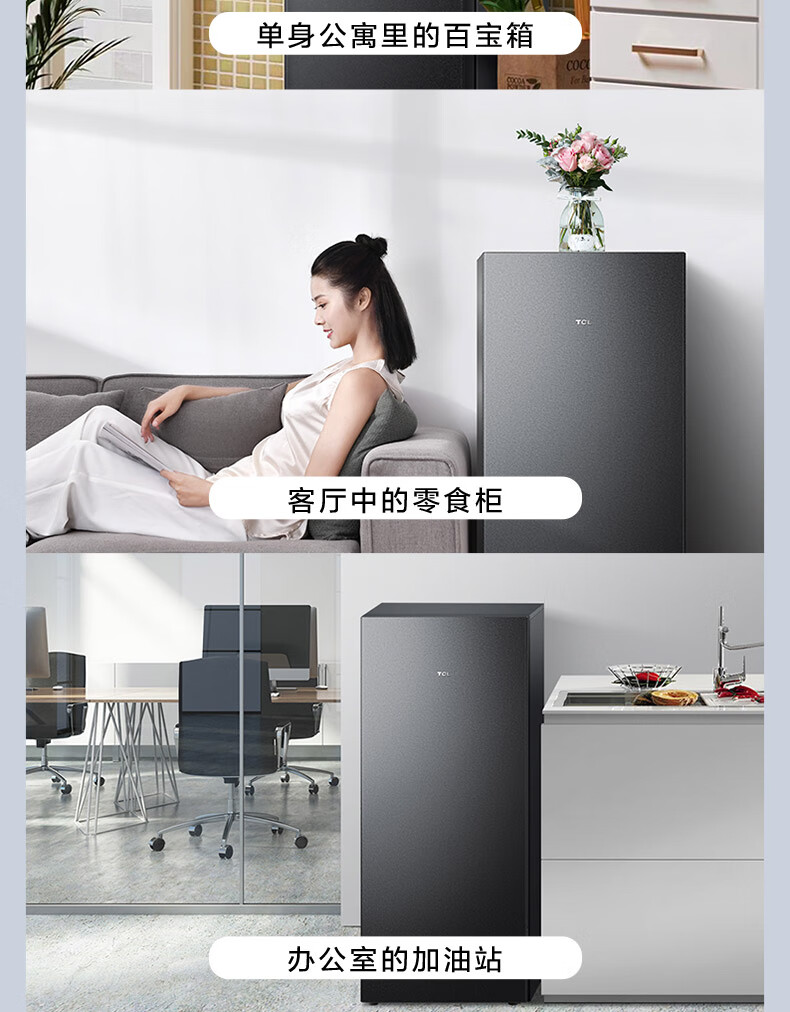 顺丰发货 TCL轻奢单门一体冰箱 冷藏➕冷冻120升单门冰箱R120-AC 西藏不发货