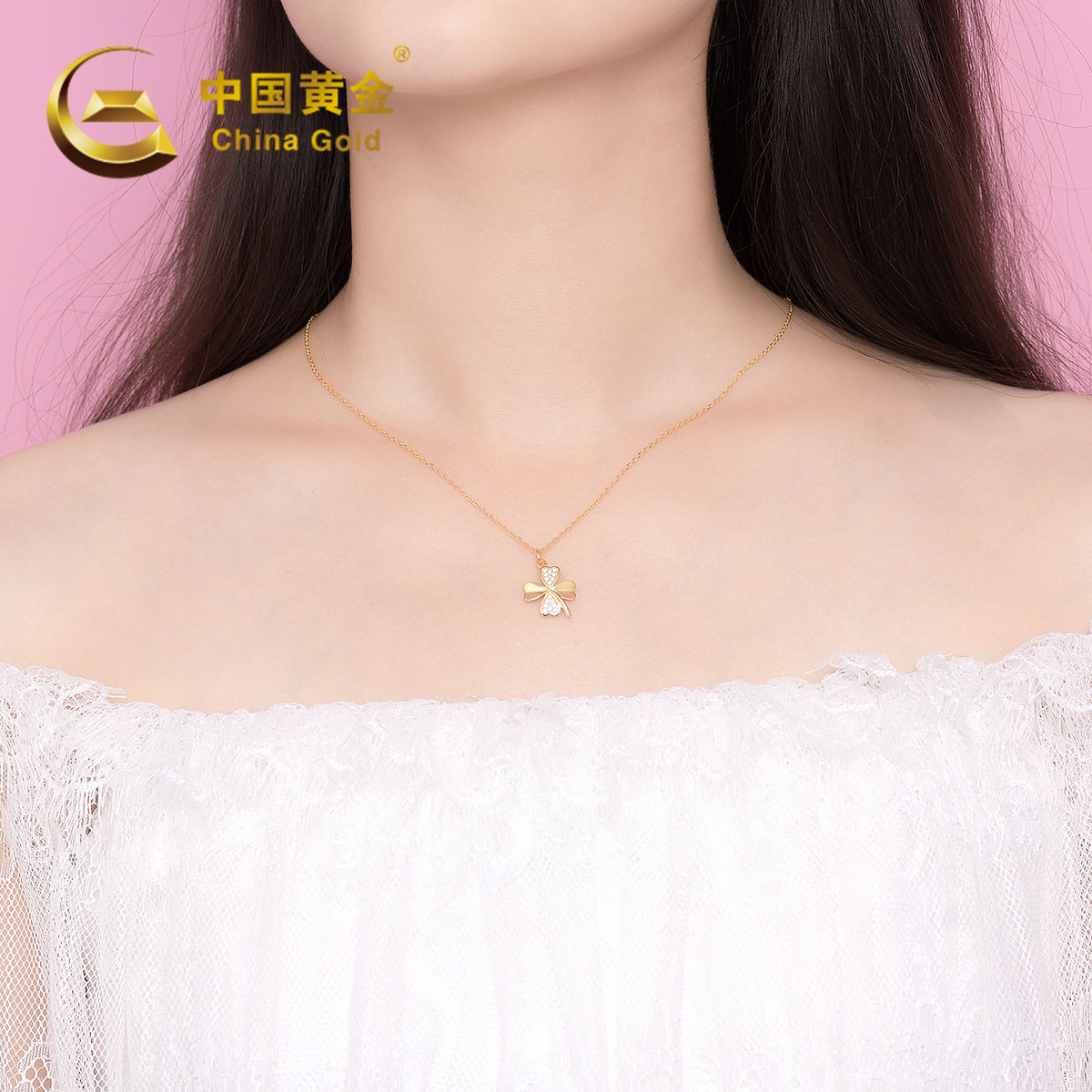 老凤祥天然钻石<小确幸>四叶草项链 LFX000033
