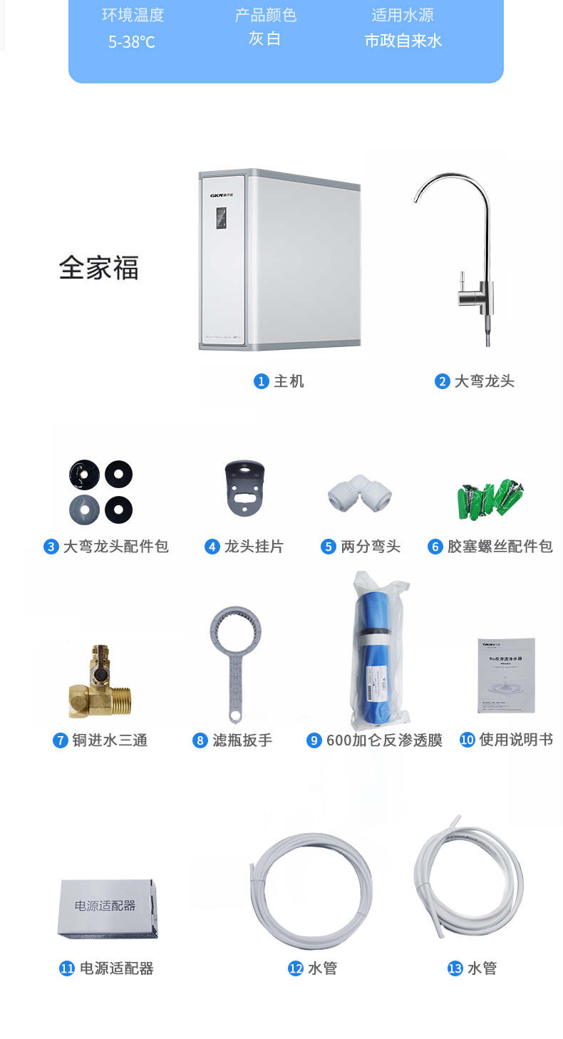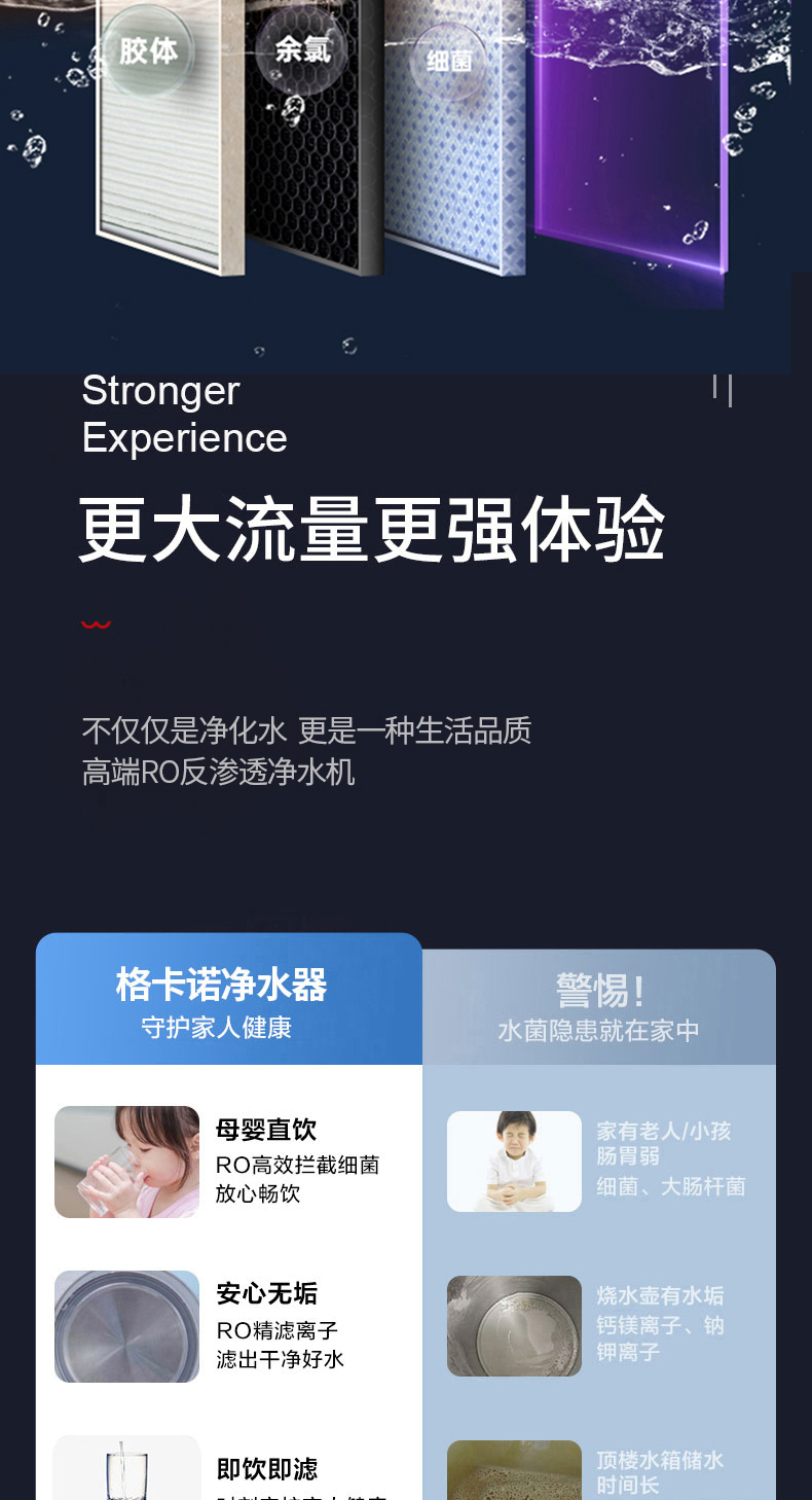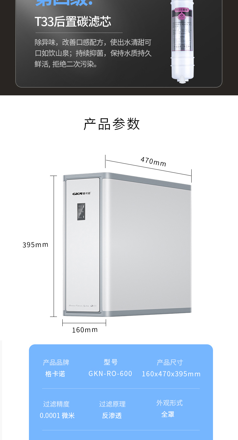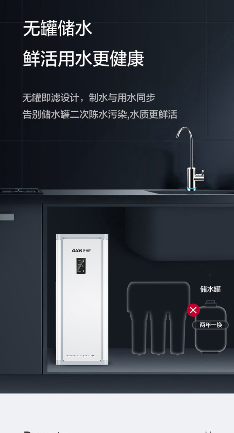 格卡诺净水器600G大流量厨下RO反渗透净水器一体式纯水机GKN-RO-600