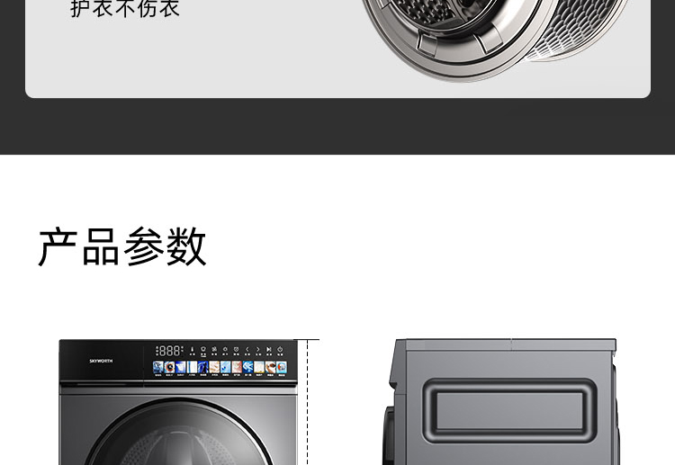 创维洗洪一体滚筒洗衣机 除菌除螨高颜值全自动节能洗脱一体滚筒洗衣机 10.1kg滚筒洗衣机XQG100-BQ1RBH钛金灰