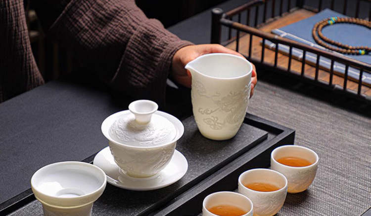 包邮-华夏吉湖茶具礼盒装 吉华湖夏龙凤呈祥浮雕功夫茶具11件套