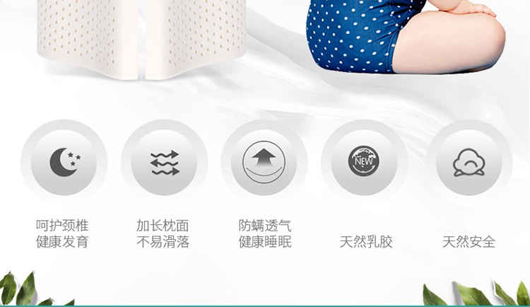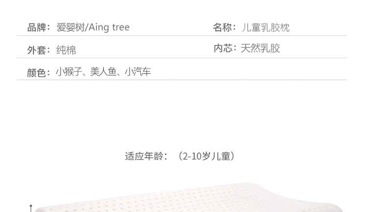 【安眠无忧】包邮-爱婴树儿童乳胶枕 2-10岁 男女贴合颈椎枕芯 护颈枕乳胶枕头幼儿园小学生枕天然乳胶 三色可选