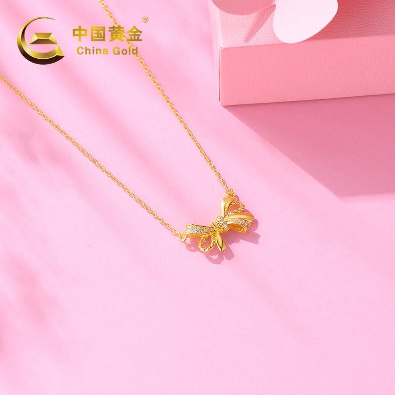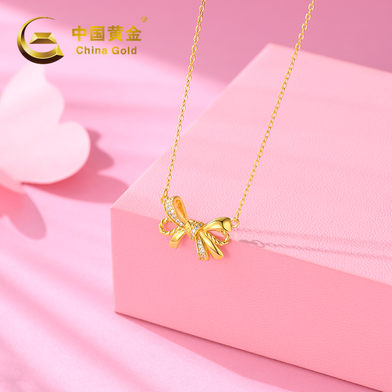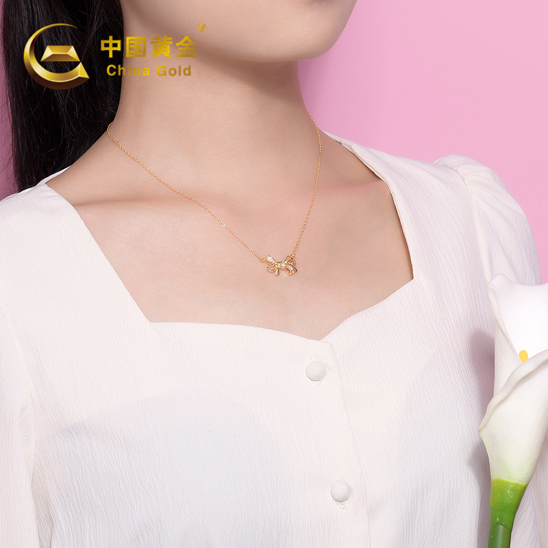包邮-中国黄金 S925银镶和田玉樱花项链镀金色ZGHJ220641(支持线下验货) 【新疆西藏不发货】