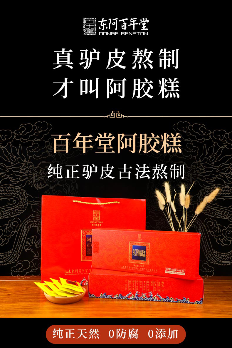 东阿百年堂红龙纹阿胶糕原味正宗驴皮200克/2盒