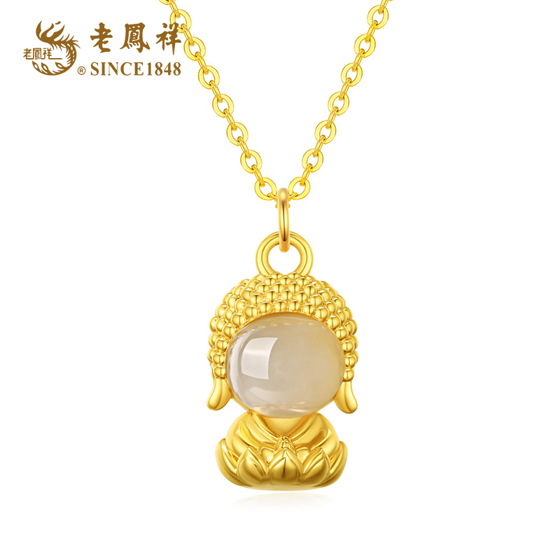 老凤祥真金18K金镶嵌天然和田玉弥勒佛经典玉石吊坠LFX000137