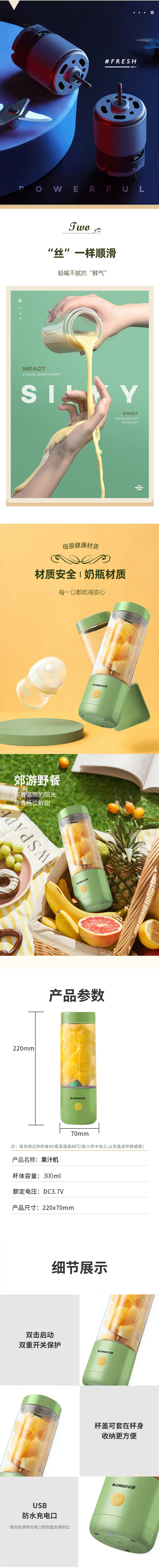 志高榨汁机便携式300ml家用小功率果汁杯TJ-10