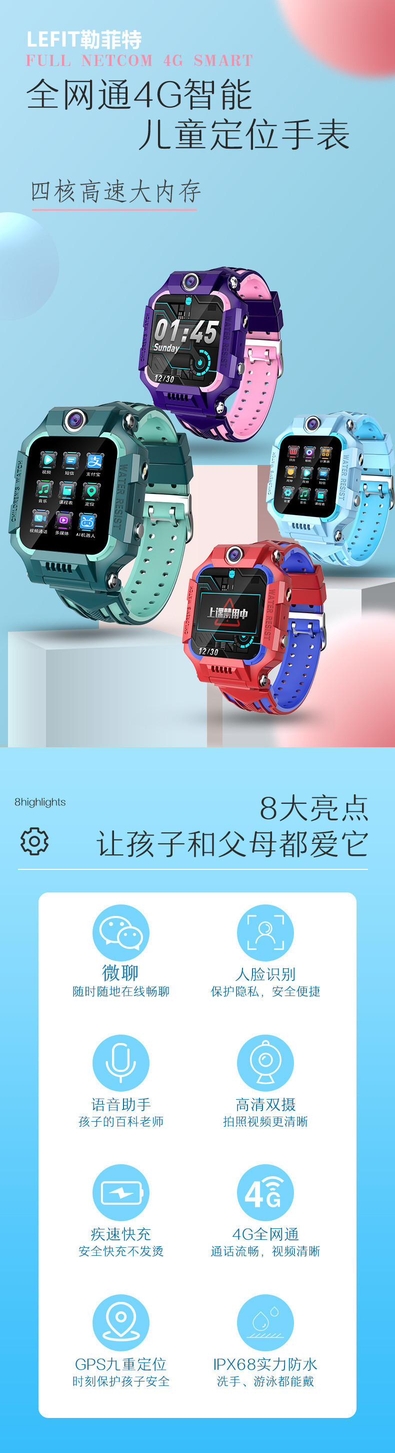 LEFIT勒菲特K07儿童手表4G全网通AI型儿童通话手表定位高清通话手表(蓝色)