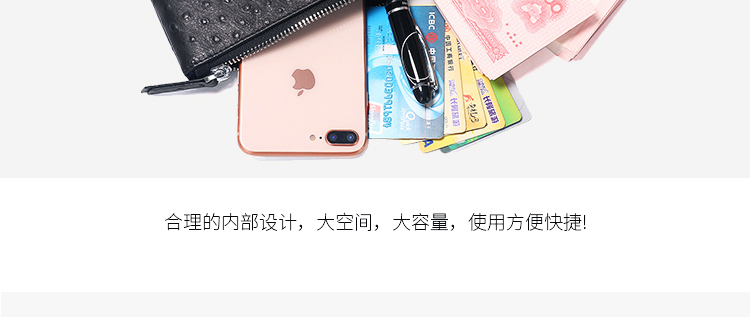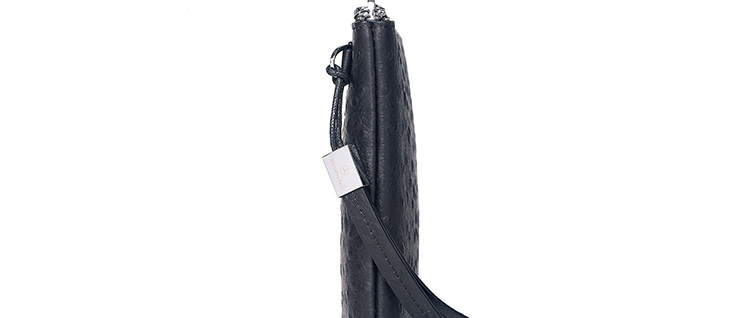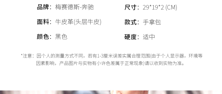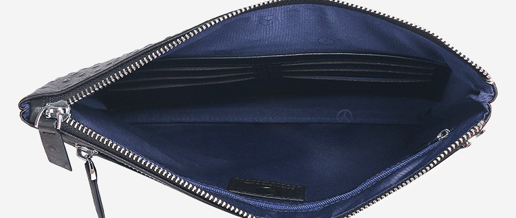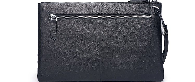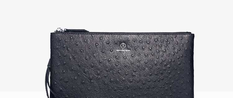 梅赛德斯-奔驰 商务休闲头层牛皮 鸵鸟纹男士手拿包手包 黑色 全国包邮